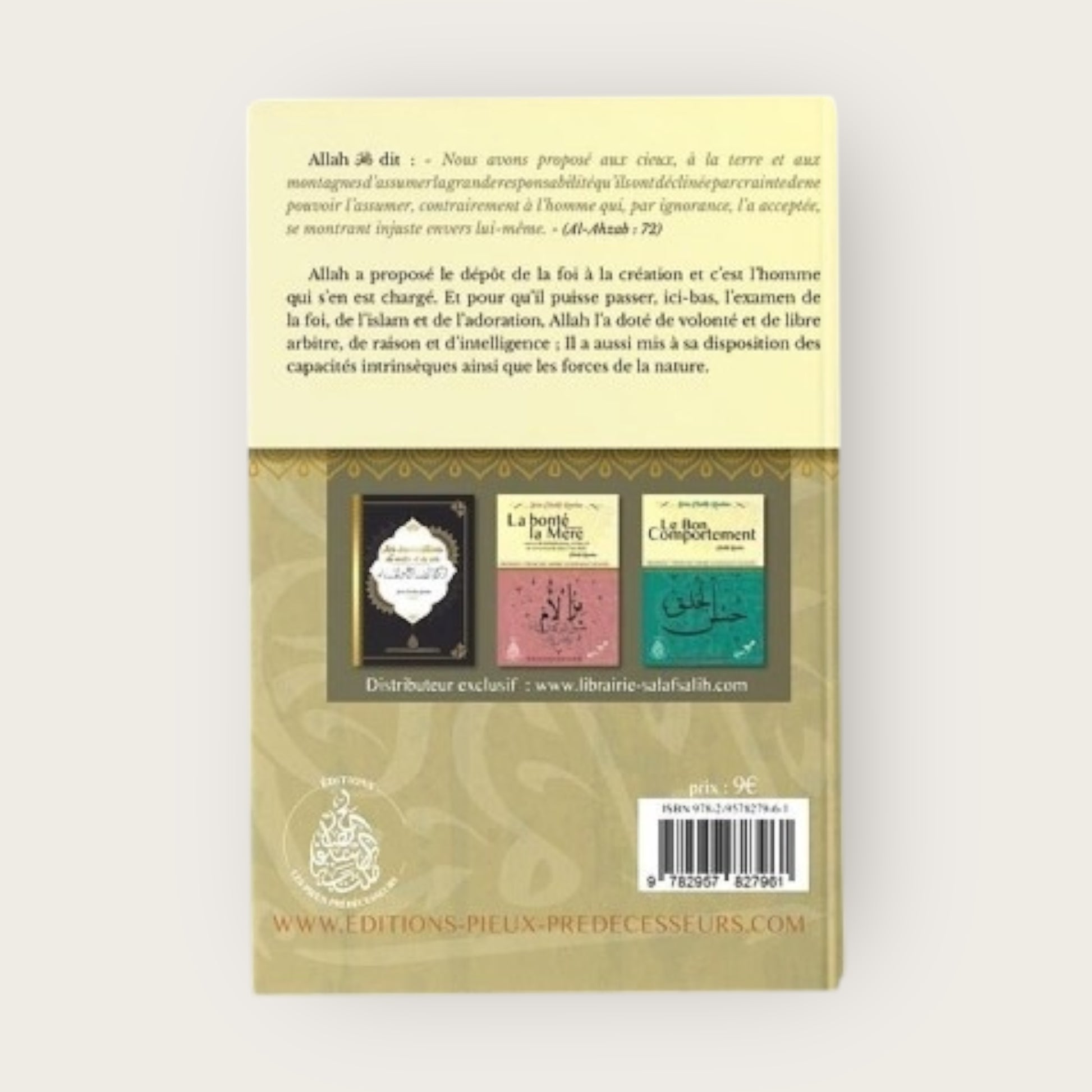 Allah ﷻ a proposé le dépôt de la foi à la création et c'est l'homme qui s'en est chargé. Et pour qu'il puisse passer, ici-bas, l'examen de la foi, de l'islam et de l'adoration, Allah ﷻ l'a doté de volonté et de libre arbitre, de raison et d'intelligence; Il a aussi mis à sa disposition des capacités intrinsèques ainsi que les forces de la nature.
