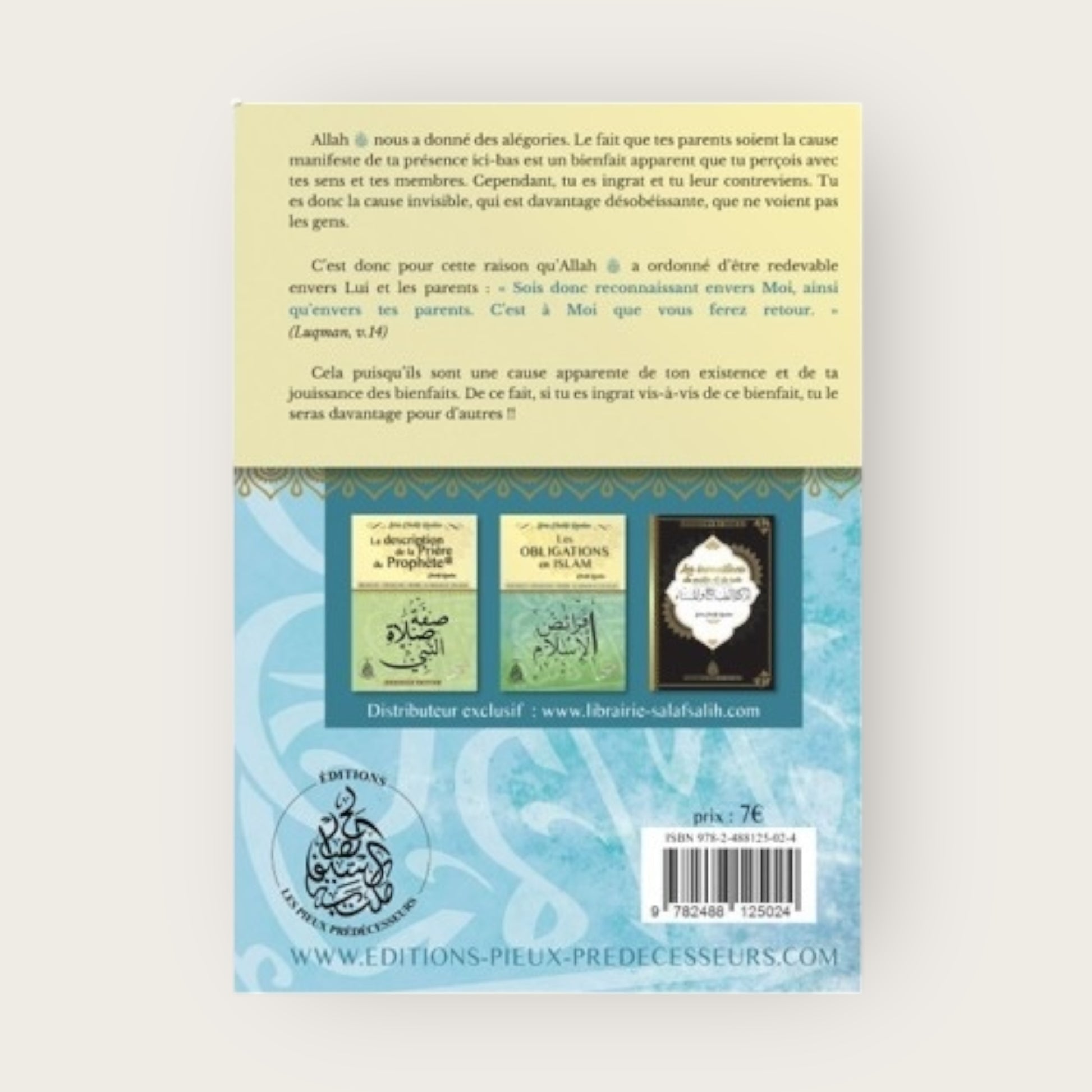 Cela puisqu'ils sont une cause apparente de ton existence et de ta jouissance des bienfaits. De ce fait, si tu es ingrat vis-à-vis de ce bienfait, tu le seras davantage pour d'autres !!